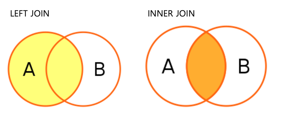 - LEFT JOIN : 공통 컬럼을 기준으로 하나의 테이블에 값이 없어도 모두 조회
